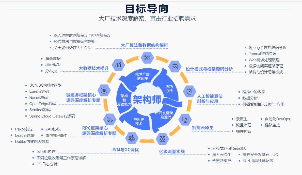 对于SpringCloud Netflix/Alibaba微服务框架源码的面试,可以说是当今互联网企业面试非常重要的环节。因为源码阅读能力是架构师区别于“码农”的重要标志,且大中型互联网企业对于微服务框架的使用,几乎都是内部二次开发过的、更适合本公司业务需求的新的框架。如果有进入大中型互联网企业的追求,那毫无疑问,就要深度阅读微服务框架的核心源码,深刻理解微服务生态中的技术选型。本课程将深度解析微服务核心源码,并深入分析SpringCloud Netflix/Alibaba微服务生态技术选型,打通你进入大中型企业之路!